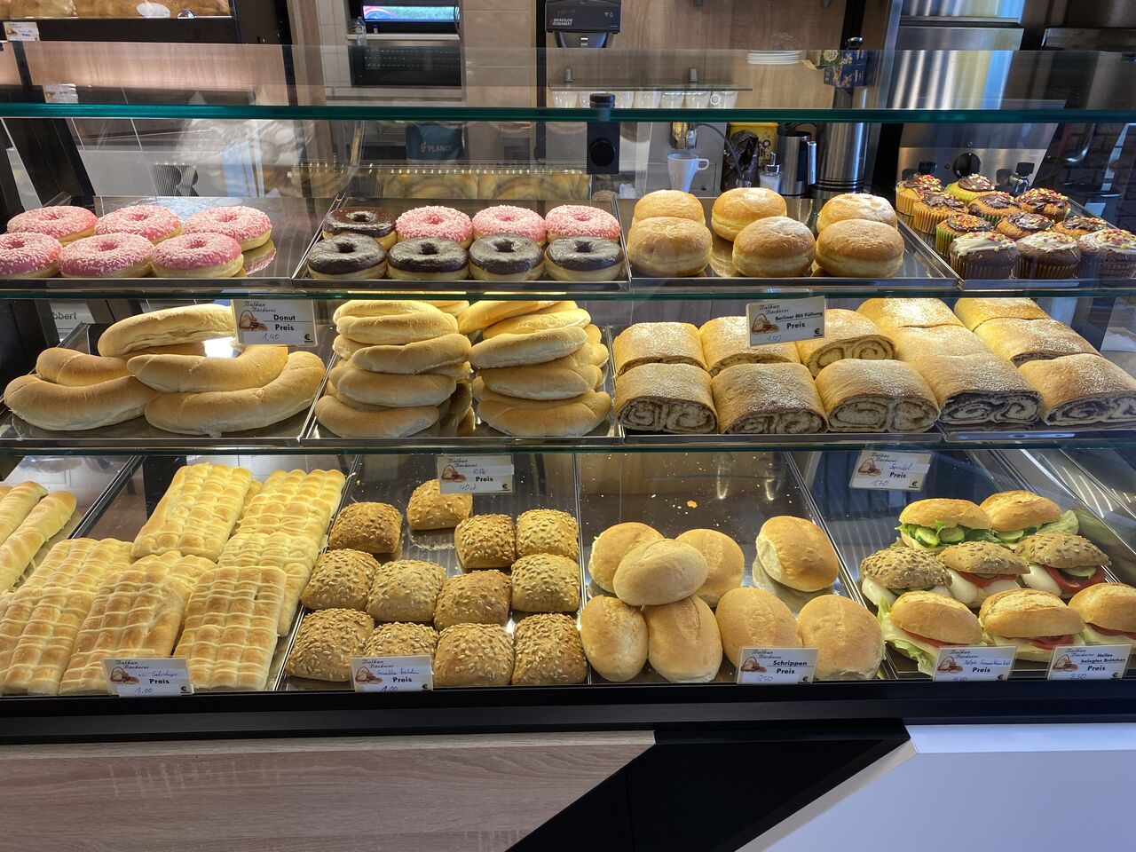 Wir bieten unseren Kunden neben unserer reichlichen Auswahl an Gebäck auch frische belegte Brötchen nach ihrer Wahl, sowie leckere Warm Gerichte wie zum Beispiel, Cevapcici und Börek.